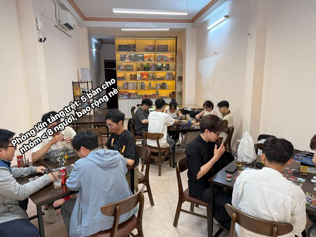 Board Game Space được thiết kế theo phong cách trẻ trung, năng động nhưng vẫn giữ được sự ấm cúng cần thiết cho các buổi tụ họp bạn bè. Không gian được bố trí linh hoạt, phù hợp cho nhiều nhóm khách khác nhau: